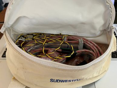 The bait & tackle and lunch boxes were used in Cézanne's Doubt to control real time audio signal processing. They were created by Kent Clelland, who programmed and performed the audio processing during live performances.